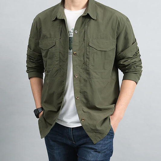 Men's Casual Quick-Drying Long Sleeve Shirt with Pockets