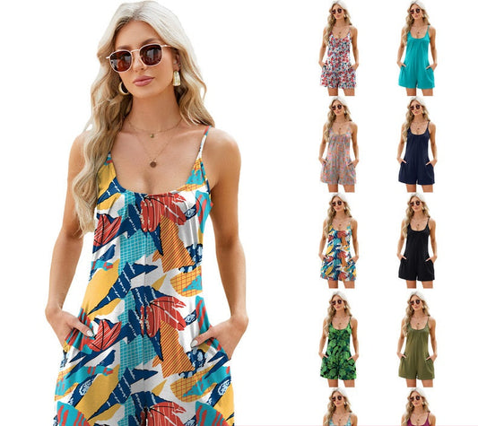 Vacation Scoop Neck Cami Romper with Pockets