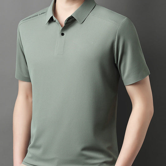 Men's Summer Cool Solid Color Lapel Short Sleeve Top