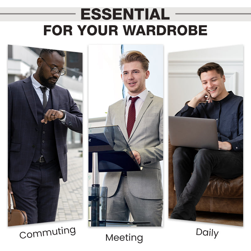 ADVANCED CLIMATE ADAPTABILITY - Innovative breathable lining with moisture-wicking properties regulates body temperature across variable conditions. Lightweight construction enables year-round wear, balancing professional presentation with comfort.