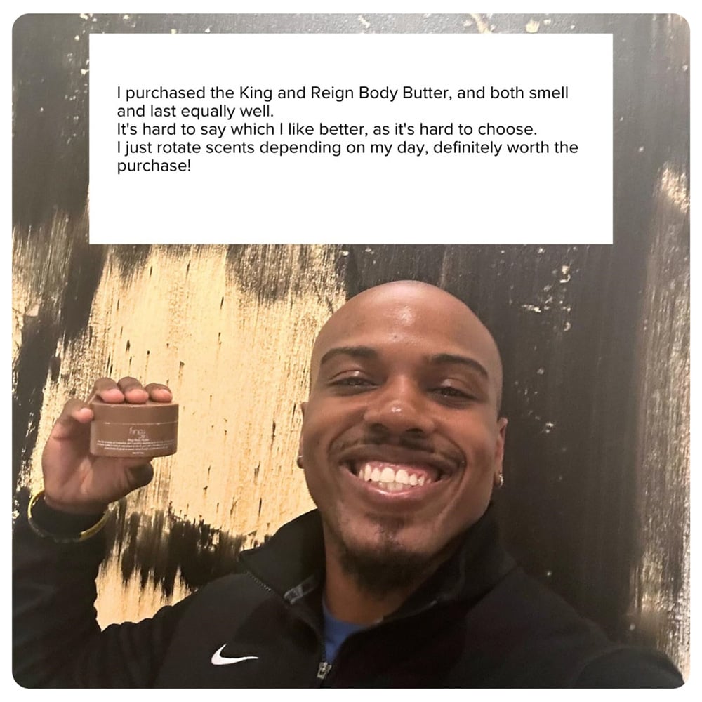 About this item: Our best-selling Men's Deeply Moisturizing Body Butter. Infused with shea and mango butter, it deeply hydrates and softens, leaving a royal fragrance that enhances your aura and confidence.