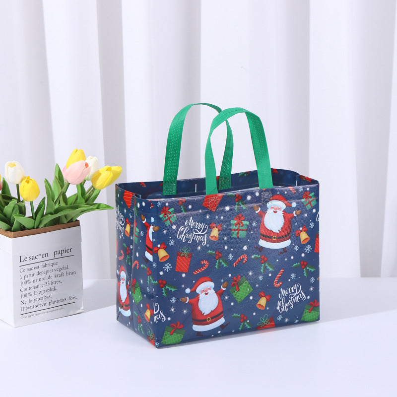 High-quality Material: Made of high-quality non-woven fabric. The Christmas bags are strong and durable enough and can be used to carry gifts to reduce the risk of tearing. You can replace your smelly plastic bags with these super stylish tote bags.