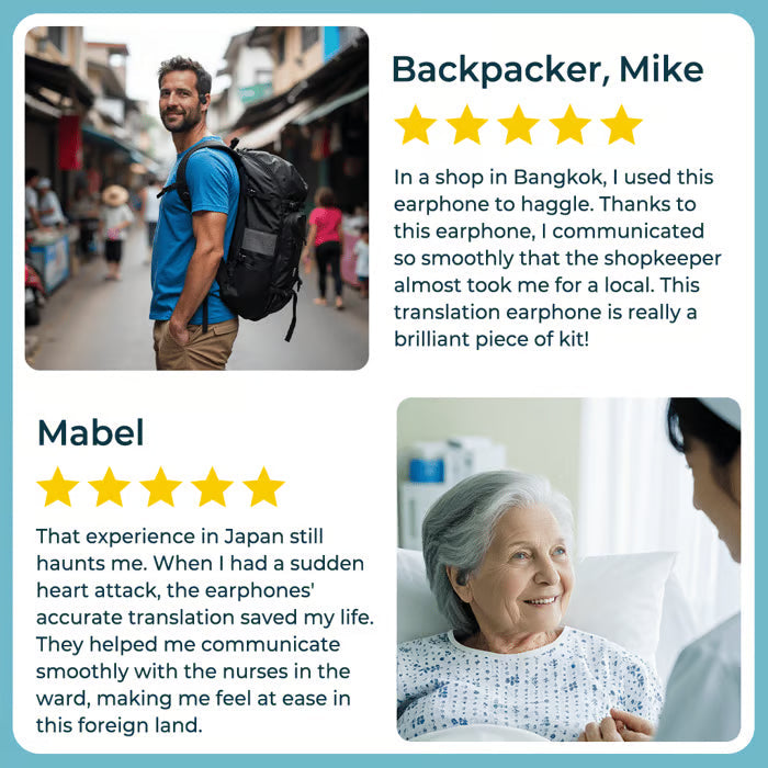 Our earbuds allow you toeasilyĀ translate & communicateĀ with others in real-time by simply giving one earbud to a partner, it willĀ translate theĀ conversation between you.