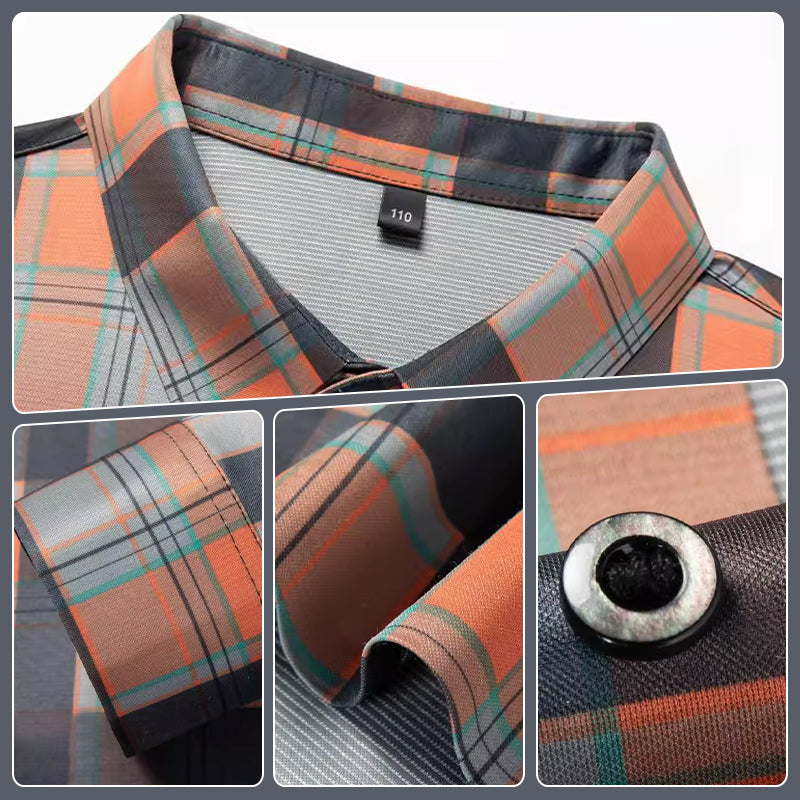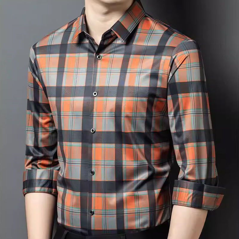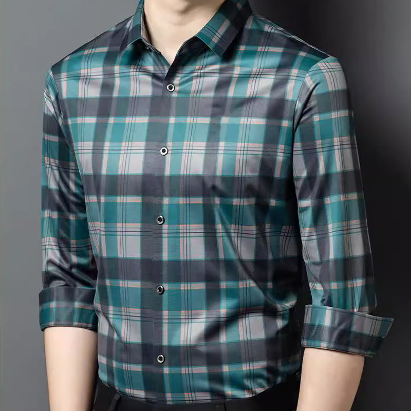 Men's Business Casual Long Sleeve Plaid Top