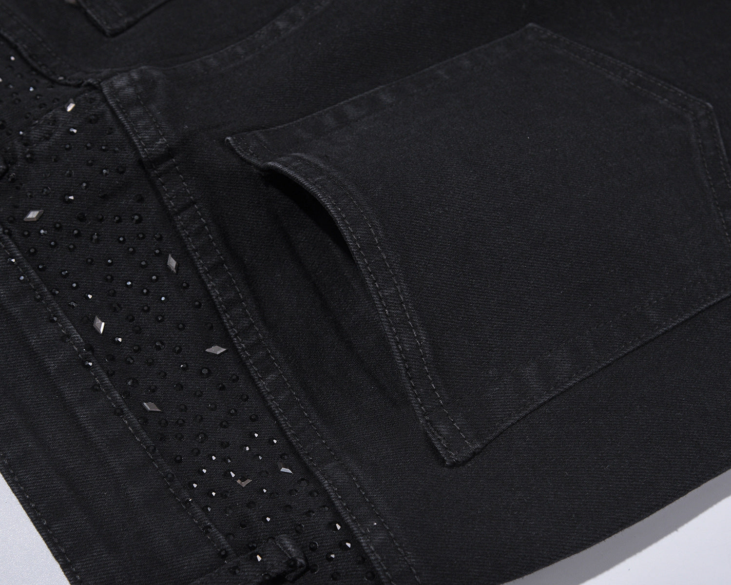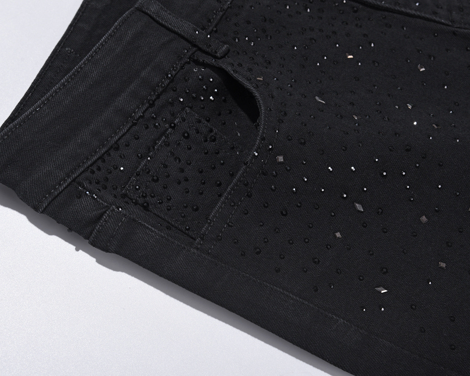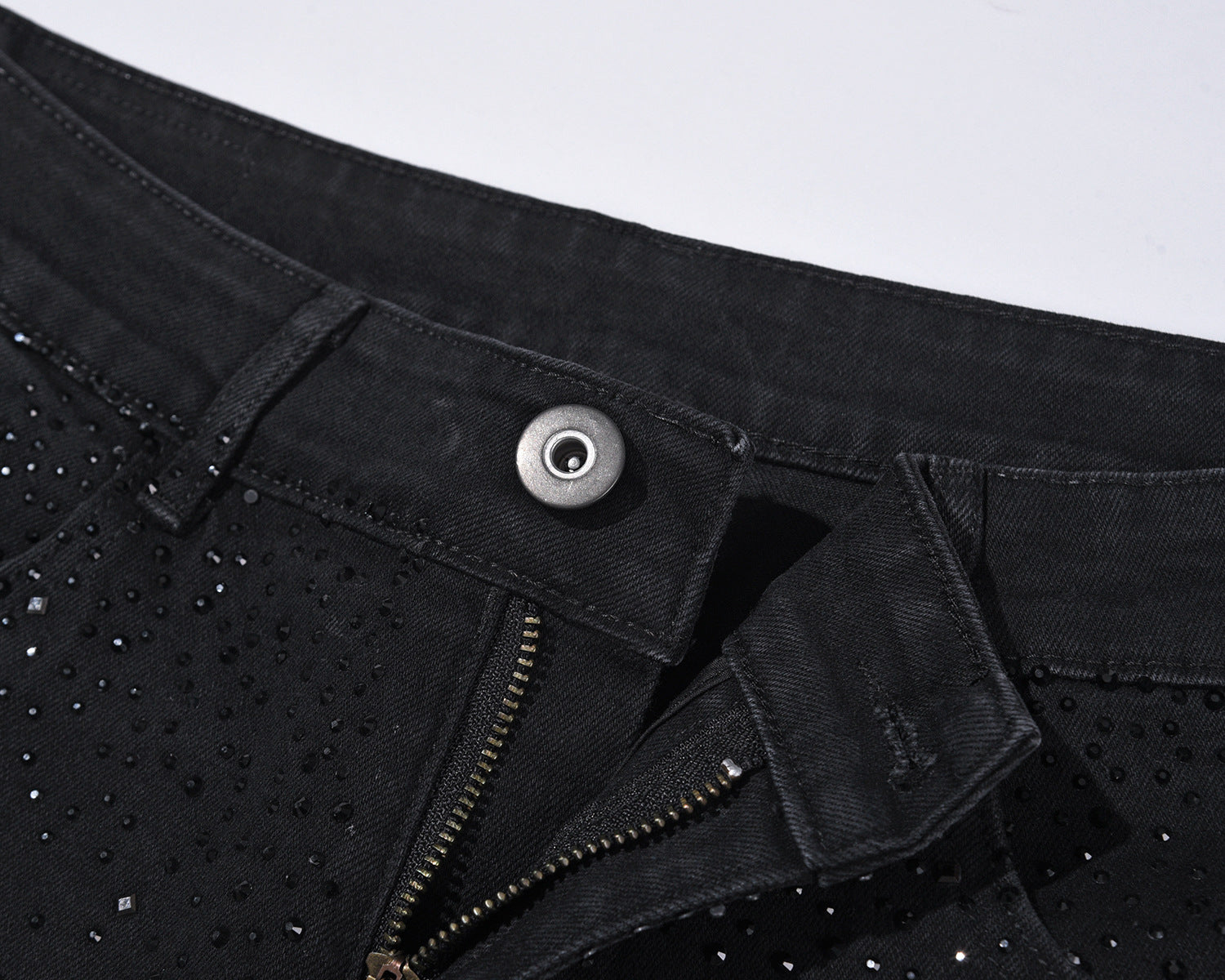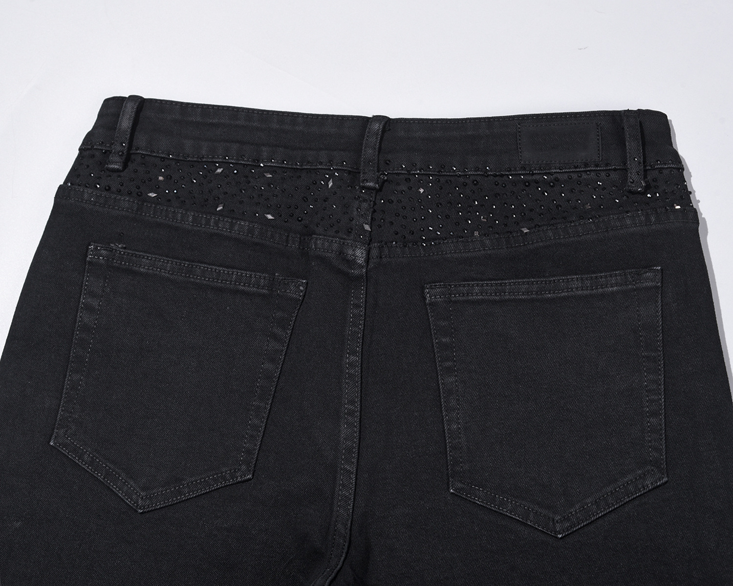 💥Christmas Sale 49% OFF👖 Rhinestone Embellished Slim-Fit Black Denim Jeans - Stretch Comfort with Sparkling Waistband for a Dazzling Look 💎🖤