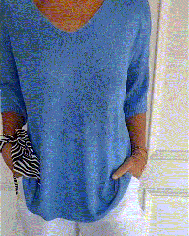 - Package includes: 1 X Solid Color Knitted V-neck Top