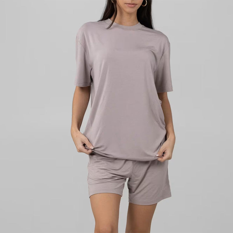 EFFORTLESS FIT - Lightweight and super comfy, this matching set is a breeze to wear. It’s made to fit lots of body types without feeling tight, so you can move freely whether you’re curled up on the couch or just relaxing at home. The simple, clean look is neat enough for surprise video calls or quick errands—relaxed but still put together. Loose, but not sloppy, made for comfort that looks good.